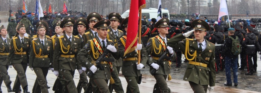 Под спортивные марши, которые исполнял духовой военный оркестр г.Знаменска, прошёл парад спортсменов-чемпионов 233 школы по различным видам спорта: плавание, рукопашный бой, спортивная гимнастика, гиревой спорт, лёгкая атлетика, футбол, волейбол.